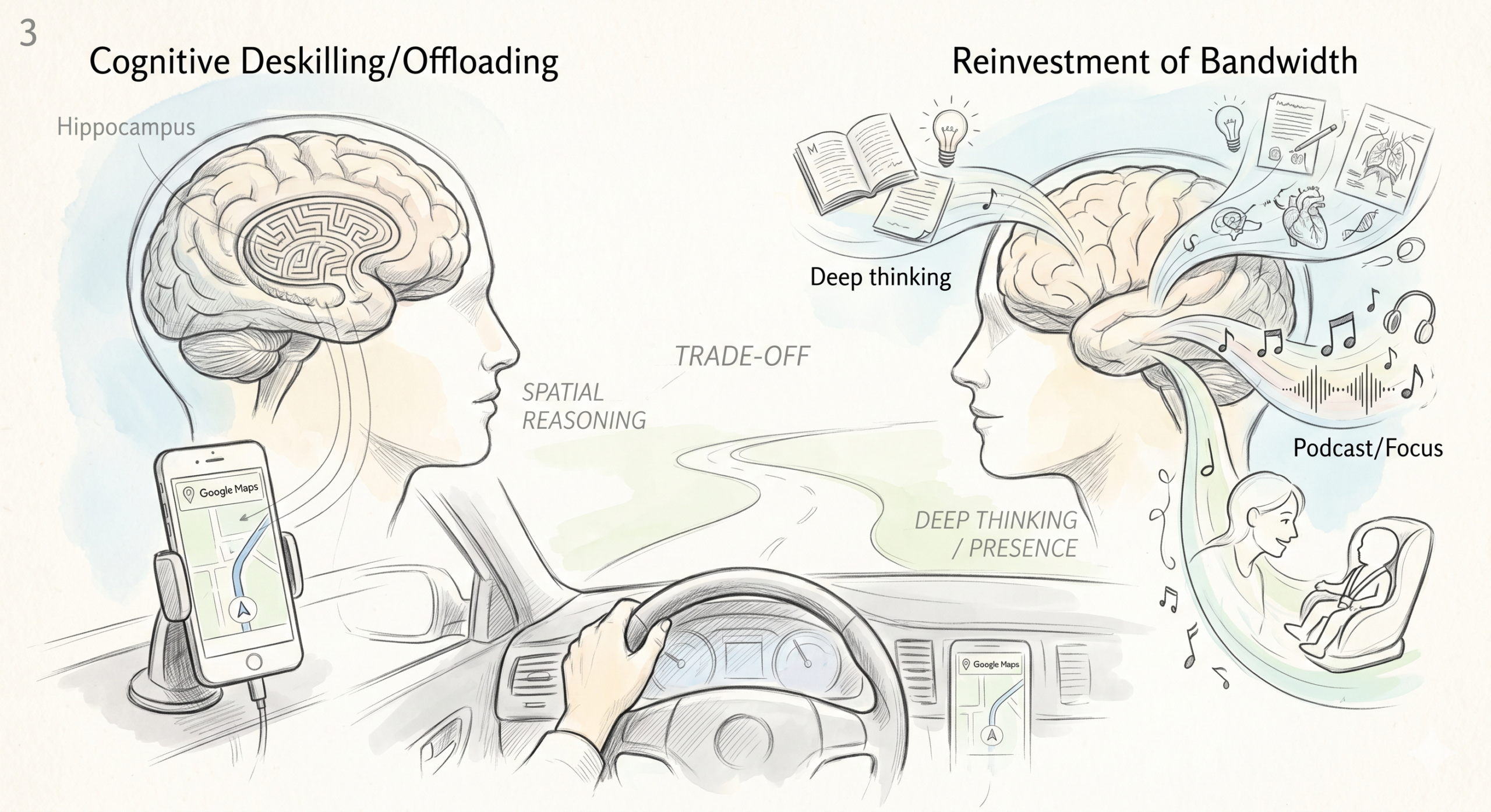 Do I care? No. I made a trade. I offloaded spatial navigation to free up bandwidth for things I care about more, like podcasts, thinking through a manuscript in my head, or just being present with little one in the back seat.