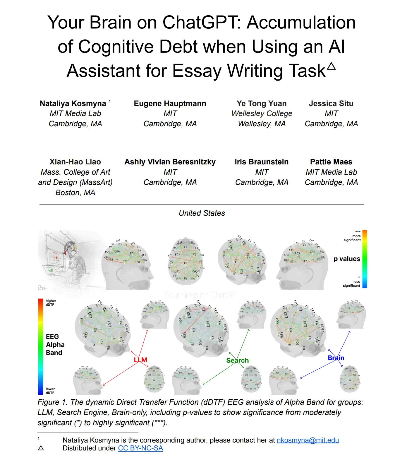 Then came the brain scans. An MIT team used EEG to measure neural activity while 54 participants wrote essays with ChatGPT, Google, or no tools. The ChatGPT group showed the weakest neural engagement. When AI was taken away, they couldn’t recall their own earlier work. The researchers called it cognitive debt (Kosmyna et al., 2025).