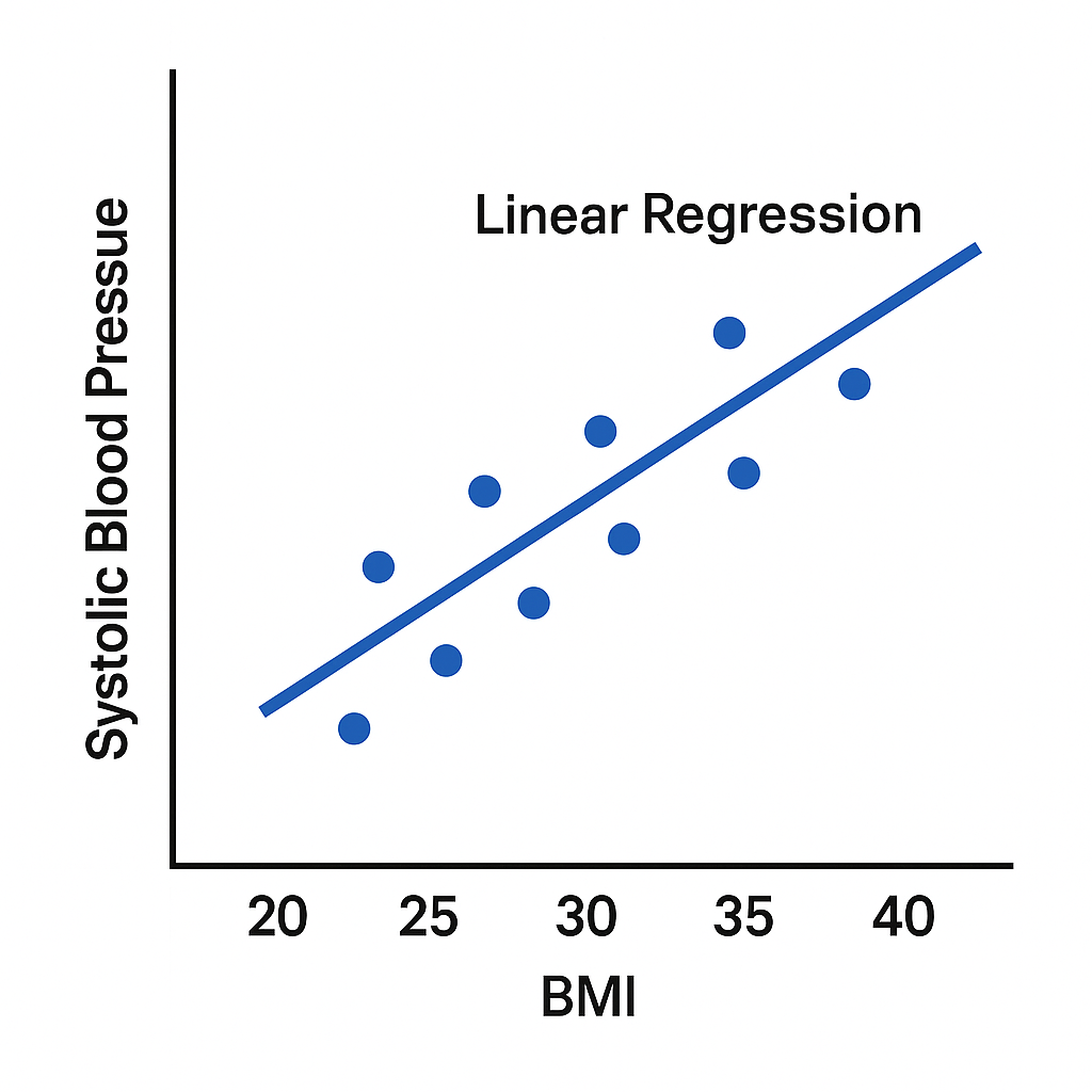 - Prediction → e.g., predict A1c from BMI, age, and medication use (Regression)