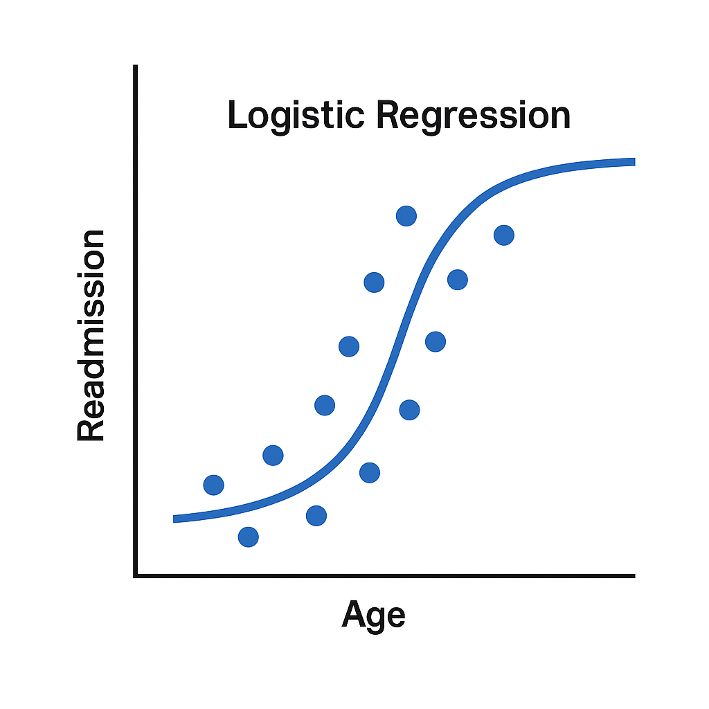 - X-axis (A1c): Predictor variable—here, the patient’s HbA1c level (a measure of blood sugar control).