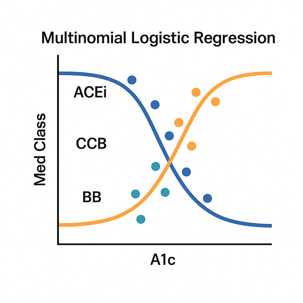 | Unordered categories | Multinomial logistic | Antihypertensive medication type |